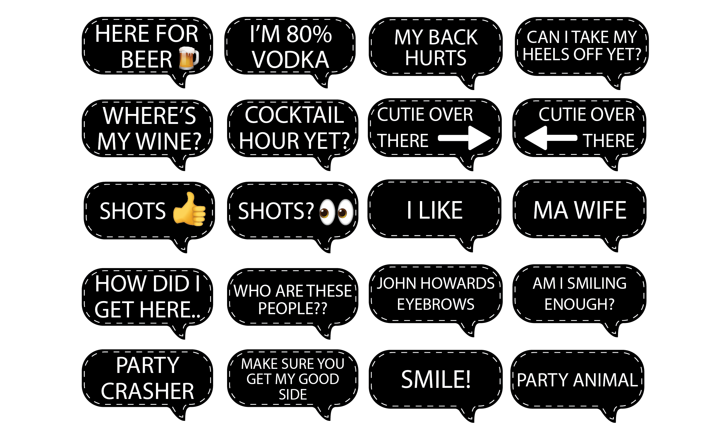 Our Standard Props package includes many fun speech bubble-style prompts to choose from.